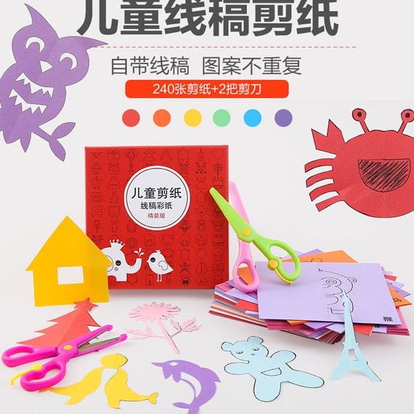 Bộ đồ chơi cắt giấy tạo hình 240 tờ kèm 2 kéo an toàn.