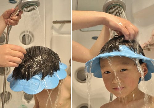 Chỉ cần đặt mũ lên trên đầu bé, phía trên vành tai, sau đó điều chỉnh cho vừa, thế là bạn có thể tha hồ gội đầu hay cắt tóc cho bé mà không lo sợ ảnh hưởng đến mắt bé bởi xà phòng, nước hay tóc vụn nữa.
