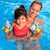 Phao bơi giúp hỗ trợ bé tập làm quen, tập bơi, giúp bé làm quen với nước, tập bé dạn dĩ và không sợ nước – Sản phẩm làm từ nhựa mềm, không làm đau bé. Phao có hoa văn sặc sỡ đẹp mắt. Thích hợp cho các bé từ 1 tuổi trở lên