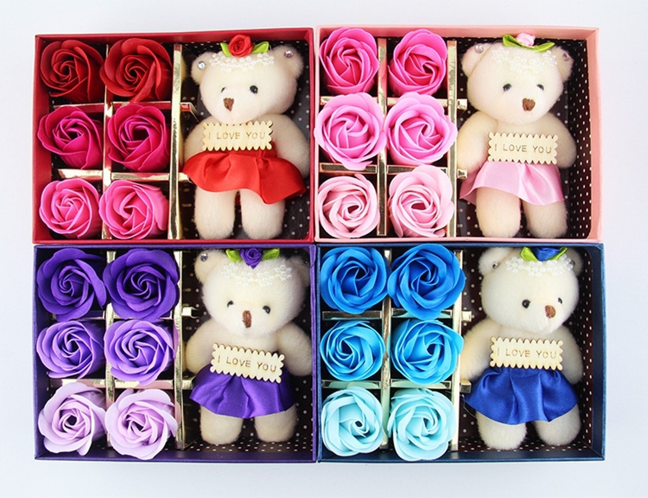 HOA HỒNG SÁP THƠM 6 BÔNG KÈM GẤU