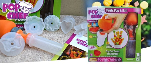 Bộ khuôn cắt trái cây Pop Chef giúp các chị em phụ nữ có thể cắt các loại rau củ quả siêu nhanh, đẹp mắt vừa đảm bảo an toàn và tiện lợi. Sản phẩm là công cụ hỗ trợ nhà bếp tuyệt vời để bạn có những đĩa hoa quả đẹp mắt