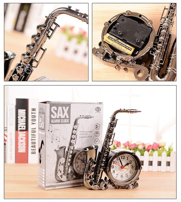 Đồng hồ báo thức hình cây kèn Saxophone là chiếc đồng hồ được làm dưới dạng mô hình kèn Saxophone mang phong cách nghệ thuật.