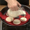 * Lần 1: Dùng tay phải ép nhẹ khuôn xuống 1/2 (cách này giúp bột tràn đều ra 4 góc).