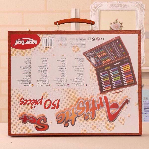 Hộp bút chì màu 150 món hộp gỗ không những khơi dậy tài năng nghệ thuật của bé mà còn rèn luyện cho bé tính ngăn nắp, gọn gàng. Bộ sản phẩm có màu sắc rất thật và sắc nét, không mùi độc hại sẽ cho bé những giờ phút sáng tạo không ngừng. Được thiết kế có hộp đựng ngăn nắp, với đầy đủ màu sắc, mẹ có thể cho bé thỏa sức sáng tạo, tha hồ thể hiện tài năng hội họa của mình chỉ với một bộ hộp màu đáng yêu.
