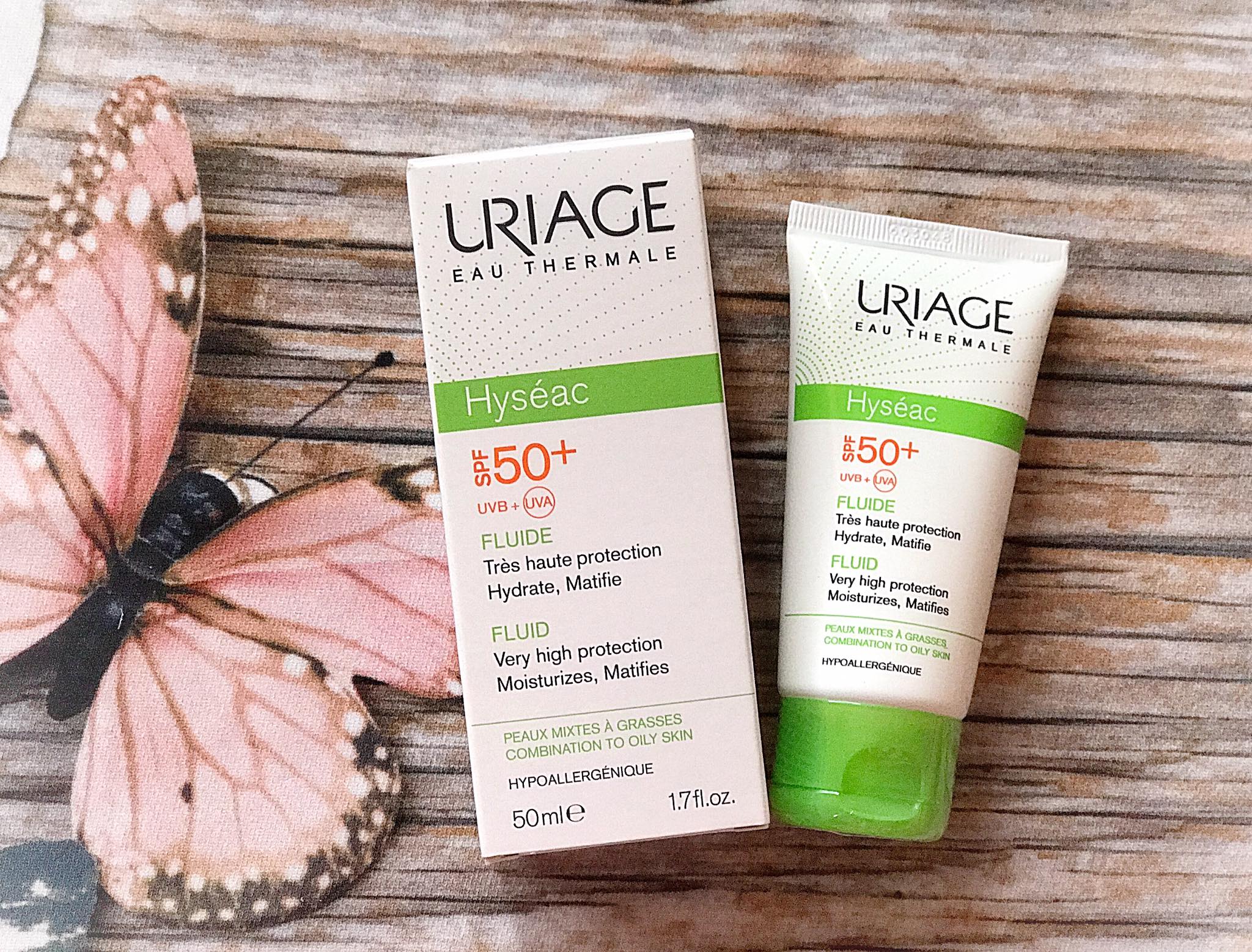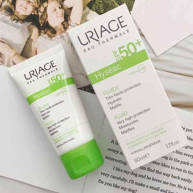 Uriage Hyseac Fluide SPF50+ với chiết xuất cam thảo cho hiệu quả giảm dầu, màng lọc tia UVA, UVB, nước khoáng Uriage làm dịu và dưỡng ẩm. Hiệu quả chống nắng cao, tăng cường tác động chống bóng nhờn cho da dầu, da mụn. Kết cấu nhẹ,không màu, không nhờn, không dính rít.