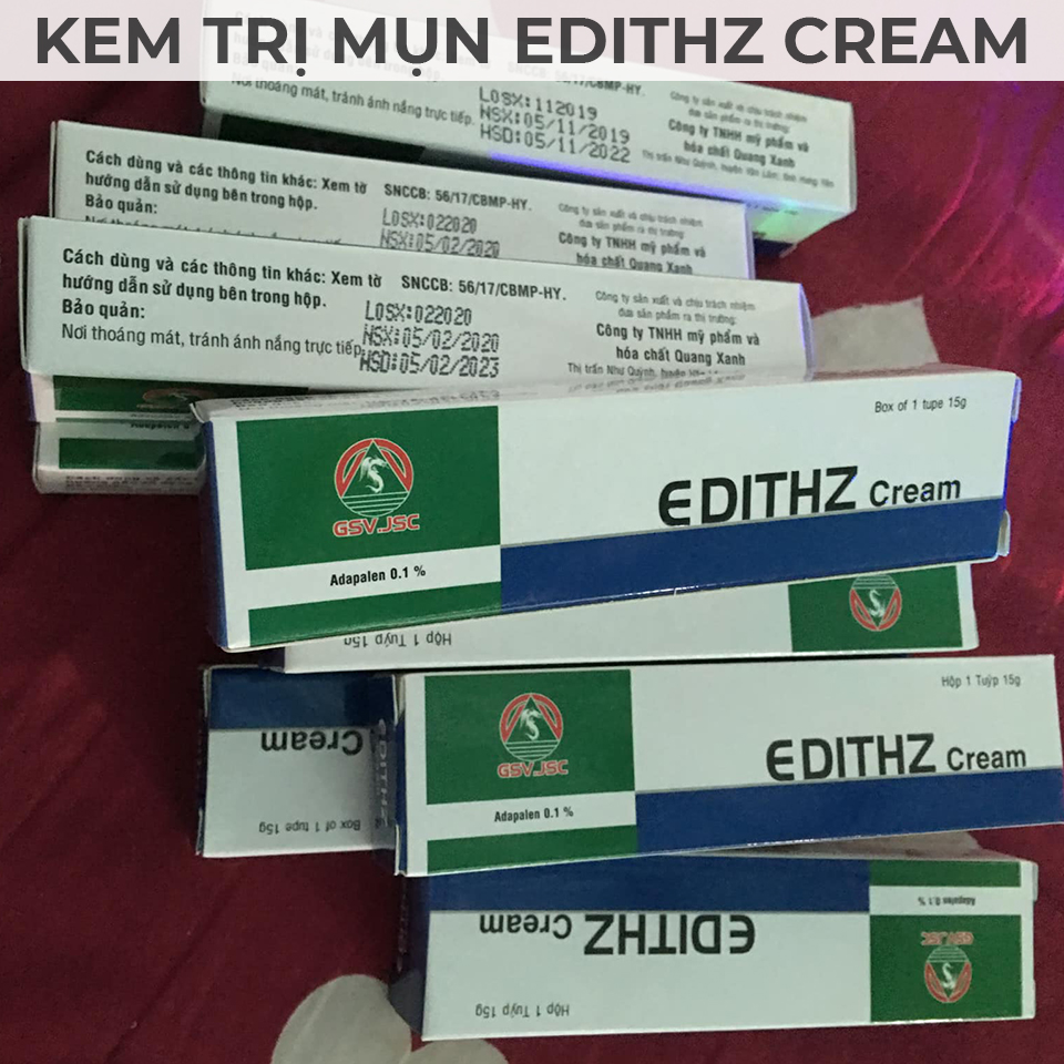 Edithz Cream là sản phẩm kem bôi da được sử dụng trong điều trị mụn trứng cá như mụn cám đầu trắng, đầu đen, sần và mụn mủ,… Thuốc có tác dụng là dưỡng ẩm, làm mát da, làm dịu da tạo cảm giác thoải mái, dễ chịu thích hợp cho da nhạy cảm.
