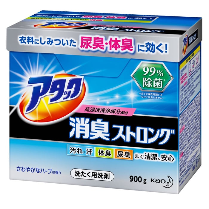 Nhãn hiệu Attack là thương hiệu bột giặt số 1 Nhật Bản và nổi tiếng trên toàn thế giới. Dòng bột giặt Attack siêu Khử mùi, vệ sinh sở hữu công nghệ khử mùi độc quyền của tập đoàn Kao Nhật Bản. Không chỉ giúp loại bỏ hiệu quả những vết bẩn có thể nhìn thấy, bột giặt Attack siêu Khử mùi, vệ sinh còn giúp khử sạch đến 99.9% vi khuẩn gây mùi.