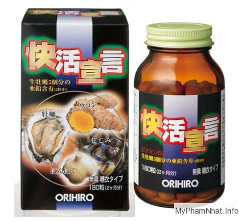 Nghệ Orihiro Của Nhật Bản 180 Viên giúp thải độc gan, bổ dương được, sản phẩm được sản xuất dựa trên sự lựa chọn tỉ mỉ từ những con sò biển của vùng biển Seto, chiết xuất ra những tinh chất quý báu nhất kết hợp cùng với tinh chất của nghệ tươi, tinh chất tỏi và tinh chất nghêu cũng được đánh bắt tại vùng biển nội địa Seto.